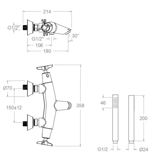 Аэратор, Металлическая розетка, Эксцентрики, Душевой шланг, Душевая лейка, Держатель для душевой лейки