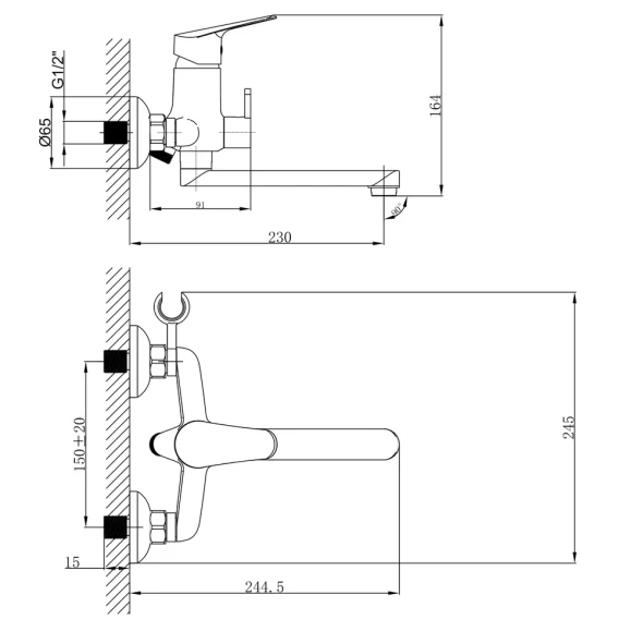Аэратор, Металлическая розетка, Эксцентрики, Душевой шланг, Душевая лейка, Держатель для душевой лейки