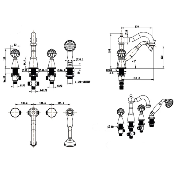 Крепление, Аэратор, Душевой шланг, Душевая лейка