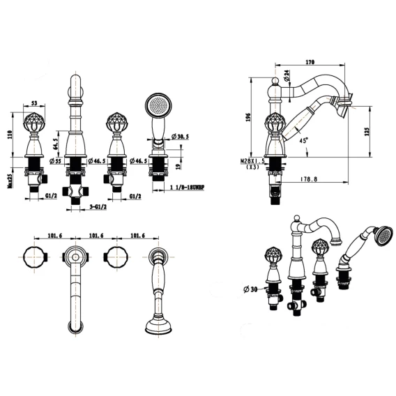 Крепление, Аэратор, Душевой шланг, Душевая лейка