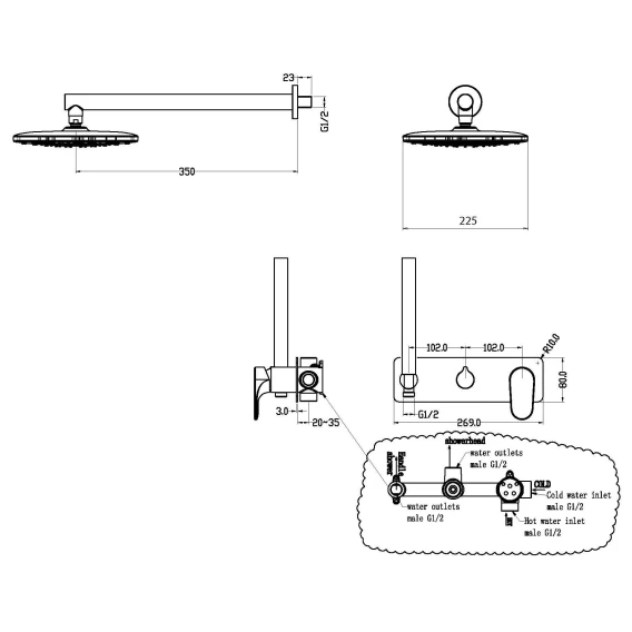 Душевой комплект 225 мм Boheme Spectre 454-GM