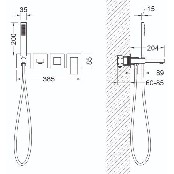 Аэратор, Душевой шланг, Душевая лейка, Подключение для душевого шланга с держателем, Излив, Скрытая монтажная часть