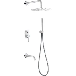 Душевой шланг, Душевая лейка, Подключение для душевого шланга с держателем, Верхний душ, Излив, Скрытая монтажная часть, Смеситель, Кронштейн