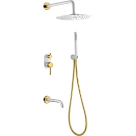 Душевой шланг, Душевая лейка, Подключение для душевого шланга с держателем, Верхний душ, Излив, Скрытая монтажная часть, Смеситель, Кронштейн
