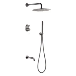 Душевой шланг, Душевая лейка, Подключение для душевого шланга с держателем, Верхний душ, Излив, Скрытая монтажная часть, Смеситель, Кронштейн