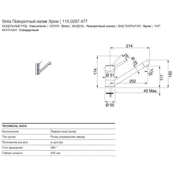 Смеситель для кухни Franke Sinta 115.0297.477
