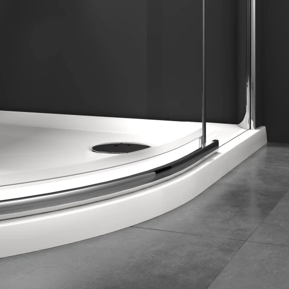 Изделие состоит из двух ровных частей и двух изогнутых частей, образующих двери поворотного типа. Устанавливается в облицованный кафелем угол ванной комнаты на поддоны RAVAK ELIPSO, ELIPSO PRO, ELIPSO PRO FLAT, ELIPSO PRO CHROME или непосредственно на пол со встроенным душевым каналом или трапом. С помощью установочного профиля можно исправить строительные неровности стен (по 1,5 см в каждую сторону). В комплектацию изделия входят 2x коротких держателя. Радиус 500 мм.