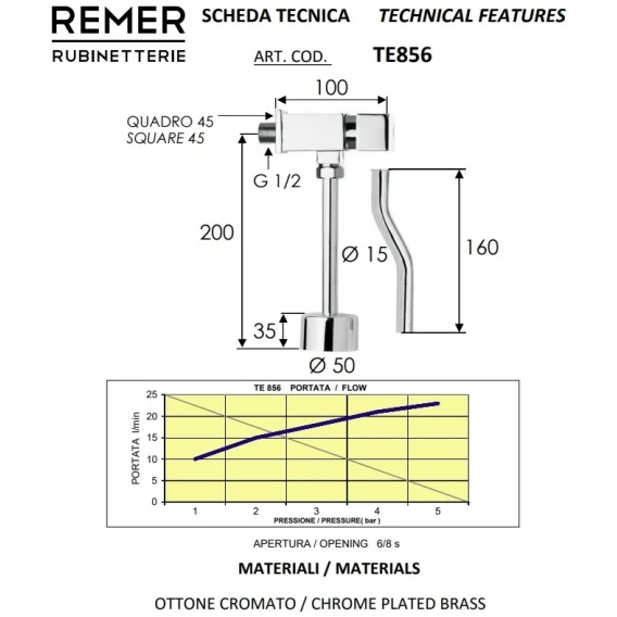 Смывное устройство для писсуара Remer TE856