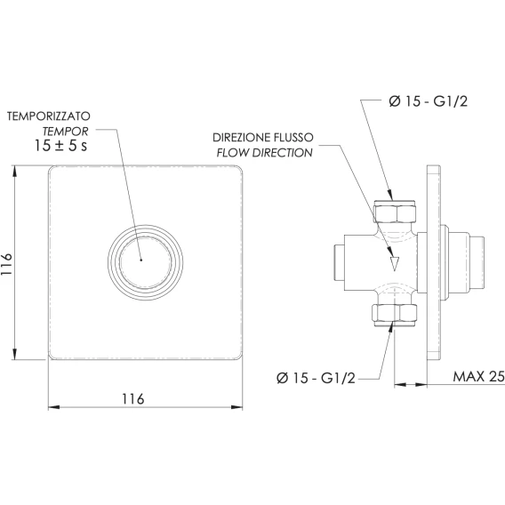 Смывное устройство для писсуара Remer Tempor TE30Q порционное, хром