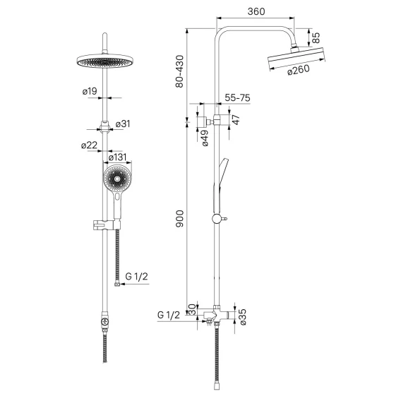 Душевая стойка 260 мм IDDIS SpaHome SPA3F0Ci76