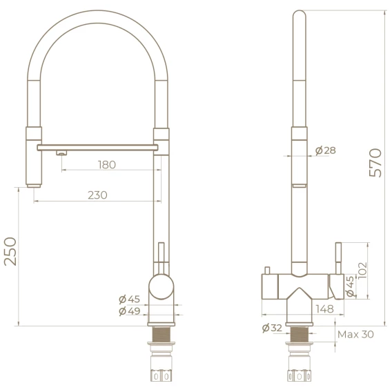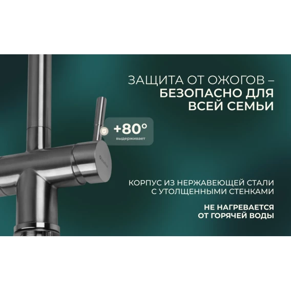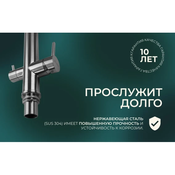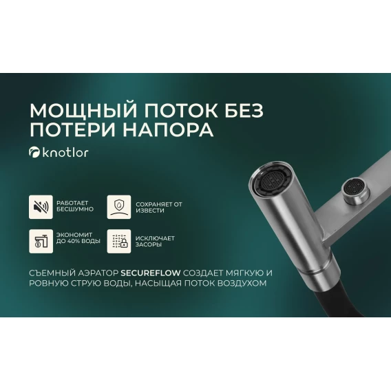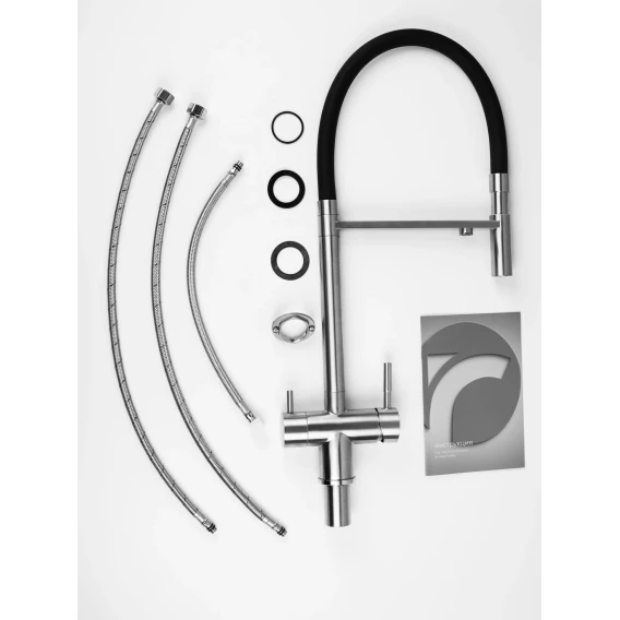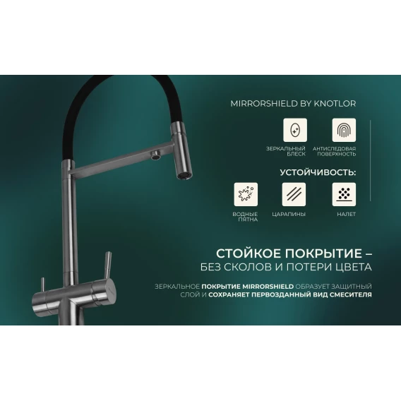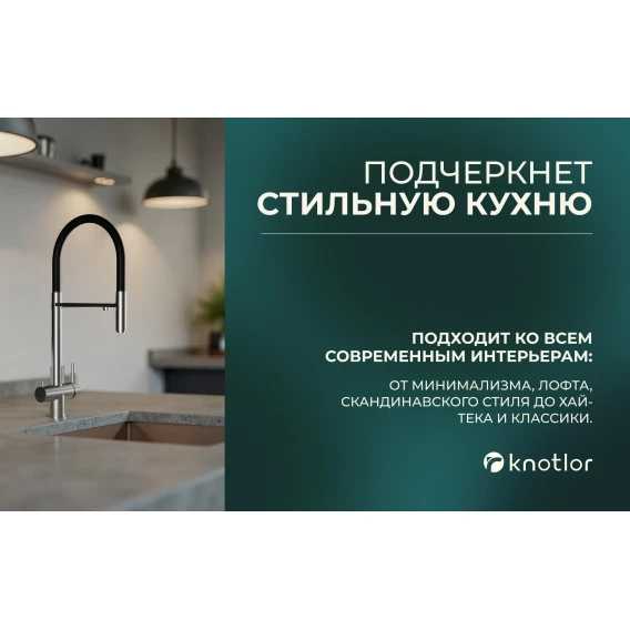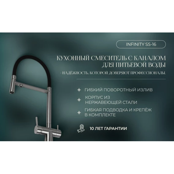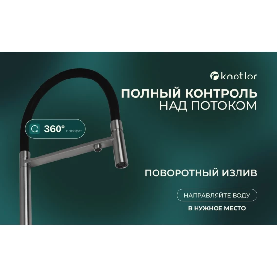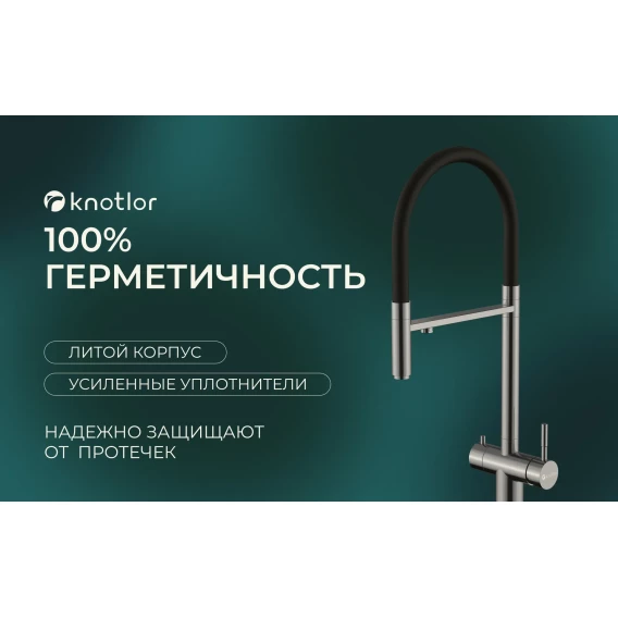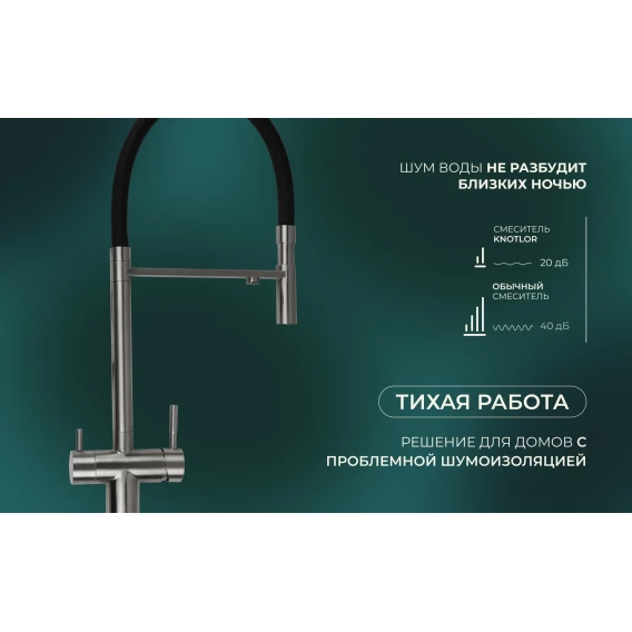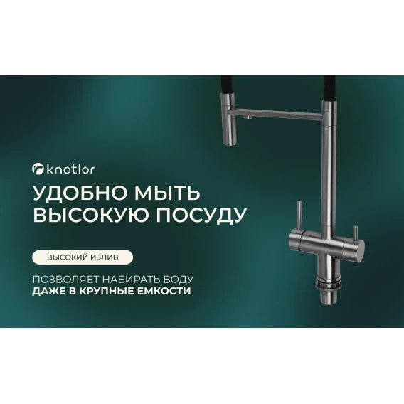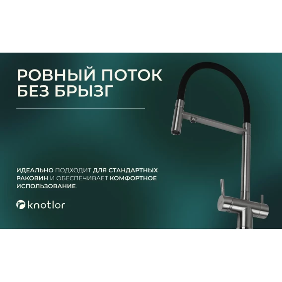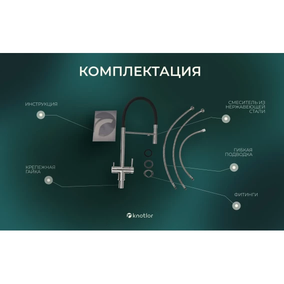 Смеситель для кухни Knotlor Infinity SS-16 с подключением к фильтру, гибким изливом, нержавеющая сталь