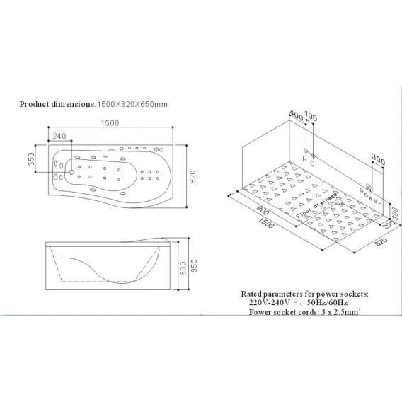 Акриловая гидромассажная ванна 150x82 см SSWW A101AL