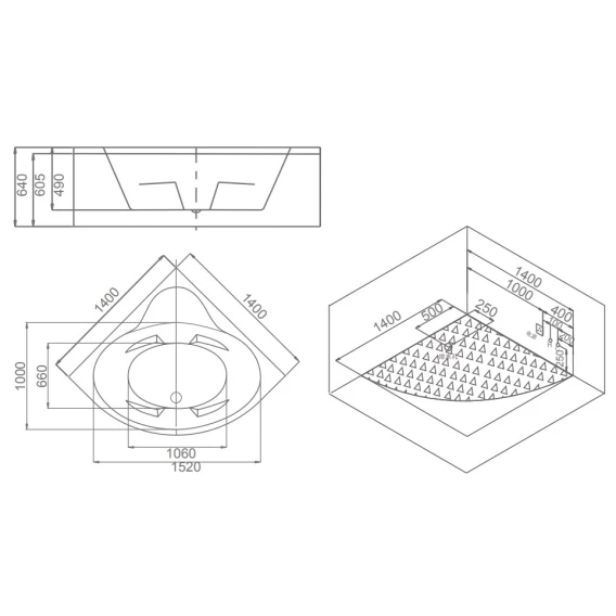 Акриловая гидромассажная ванна 140x140 см SSWW A1903 CGSP
