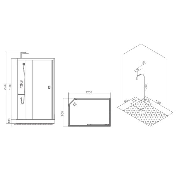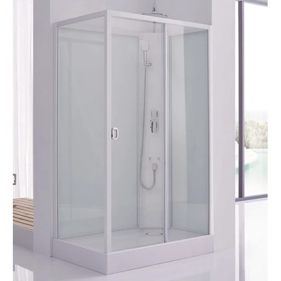 Акриловый низкий поддон высотой 130 мм. Армировка поддона натуральное дерево, поддон усилен рамой из нержавеющей стали, что обеспечивает дополнительную шумоизоляцию и устойчивость;Съемная фронтальная панель;Тропический верхний душ;Ручной душ;Прозрачное закаленое стекло толщиной 6мм;Новые ролики с безшумным и более плавным механизмом скольжения;Дополнительные алюминиевые профили по бокам подвижного стекла обеспечивающие жесткость конструкции;Простая и быстрая установка, безсиликоновая сборка;Корпус девиатора и смесителя из латуни