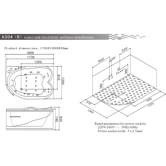 Акриловая гидромассажная ванна 180x120 см SSWW A304R BH168H