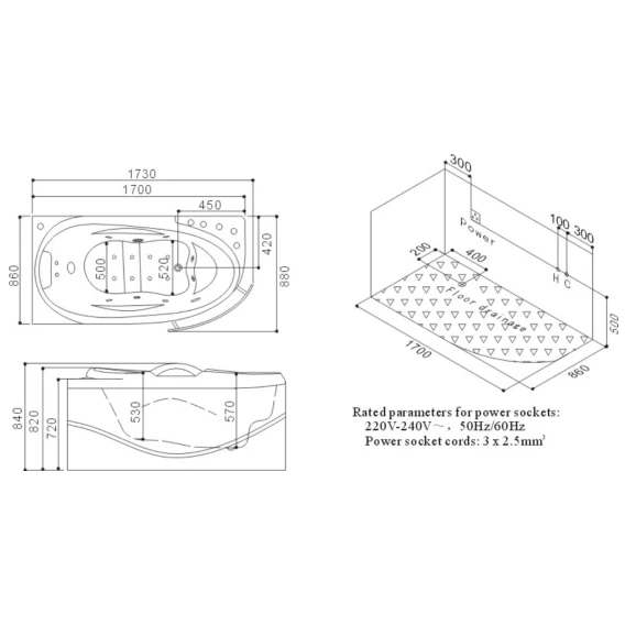 Акриловая гидромассажная ванна 173x88 см SSWW A307LBH608F