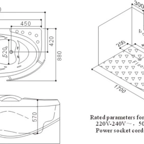 Акриловая гидромассажная ванна 173x88 см SSWW A307RBH168H