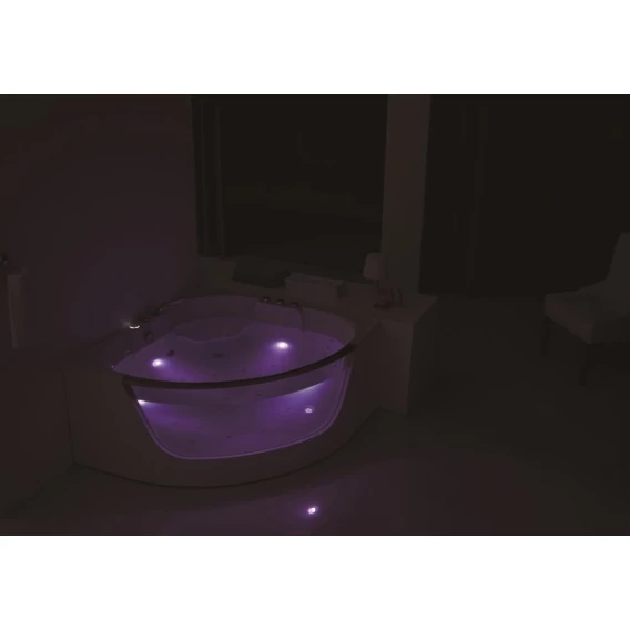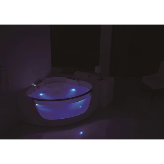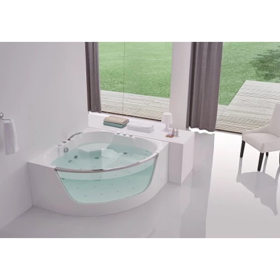 C гидромассажем, с аэромассажем "пузырьки шампанского", подводная LED подсветка, каскадный налив воды через перелив, с смесителем, с слив - перелив, на раме с фронтальной панелью, с подголовником. С пультом H631S.