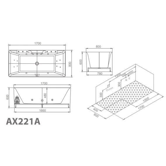 Акриловая гидромассажная ванна 170x80 см SSWW AX221A BGSN