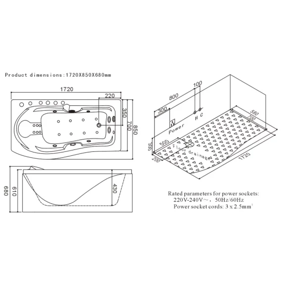 Акриловая гидромассажная ванна 172x85 см SSWW A104R