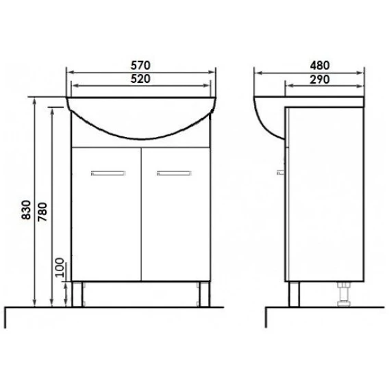 Тумба с раковиной белый глянец 57 см Orange Стиль St-55TU+RA