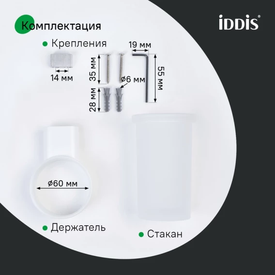 Стакан для зубных щеток IDDIS Petite PETWTSGi45 настенный, белый матовый