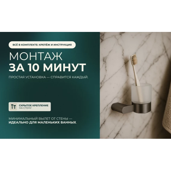 Стакан для зубных щеток Knotlor Bliss SC102GM настенный, вороненая сталь