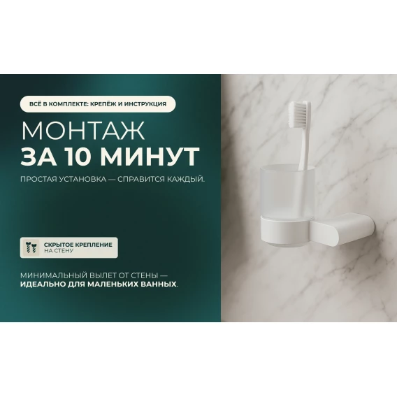 Стакан для зубных щеток Knotlor Bliss SC102WY настенный, белый матовый