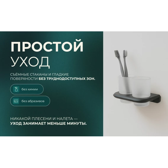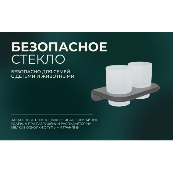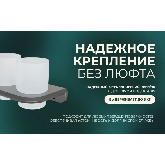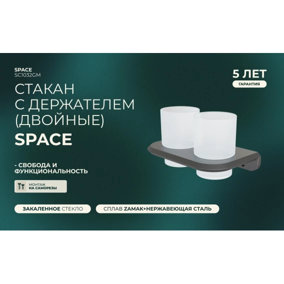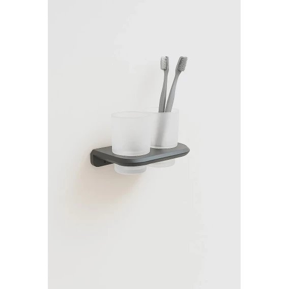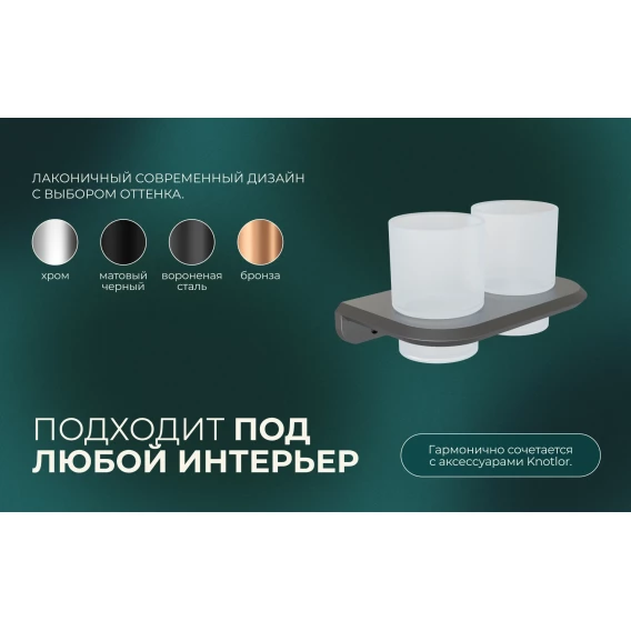 Стакан для зубных щеток Knotlor Space SC1032GM двойной, настенный, вороненая сталь