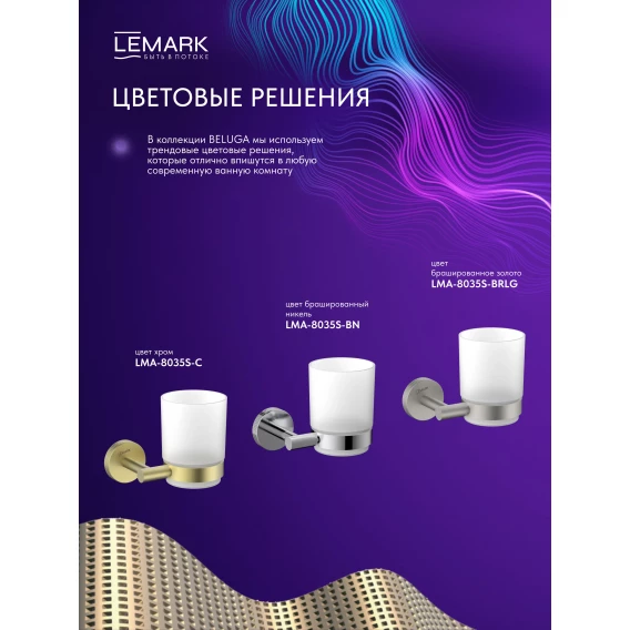 Стакан для зубных щеток Lemark Beluga LMA-8035S-BRLG настенный, светлое золото матовый
