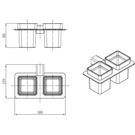 Стакан для зубных щеток Raglo R301.08.03 двойной, настенный, золотой матовый