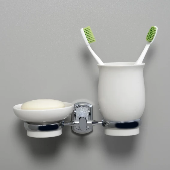 Стакан для зубных щеток с мыльницей WasserKRAFT K-24126 настенный, хром