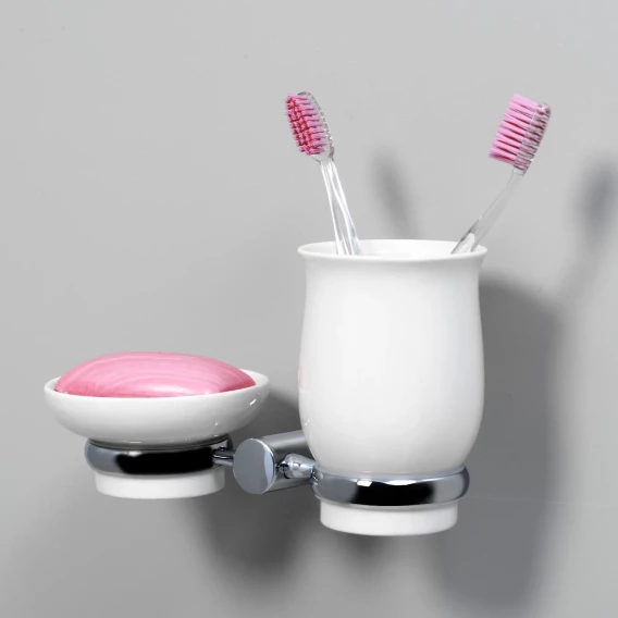 Стакан для зубных щеток с мыльницей WasserKRAFT K-24226 настенный, хром