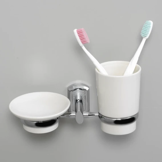 Стакан для зубных щеток с мыльницей WasserKRAFT K-28126 настенный, хром