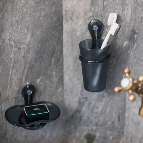 Стакан для зубных щеток на присоске LOOP – удобная, легкая и функциональная модель, предназначенная для зубных щеток и пасты. Емкость оборудована специальным держателем на присоске, с противоположной стороны которого расположено кольцо. Изделие можно закрепить на кафельной, окрашенной, отделанной пластиком стене ванной или любой другой комнаты.Особенности:- стильный дизайн и расцветка- материал изготовления – полипропилен.Производство: Германия