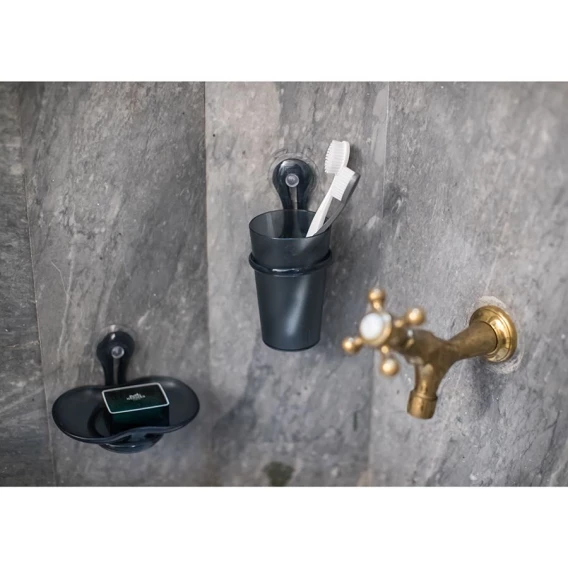 Практичный органайзер идеально подходит для хранения зубных щеток и прочих аксесссуаров.Аксессуар надежно крепится на стену или зеркало с помощью присоски. Стакан легко снимается с держателя для мытья. Материал не содержит бисфенола-А и меламина.Можно мыть в посудомоечной машине.