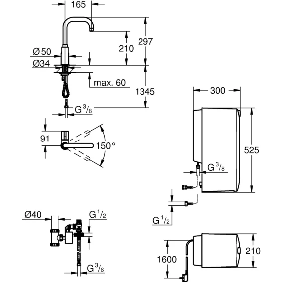 Стартовый комплект Mono, Combi boiler, U-излив Grohe Red Mono 30157000