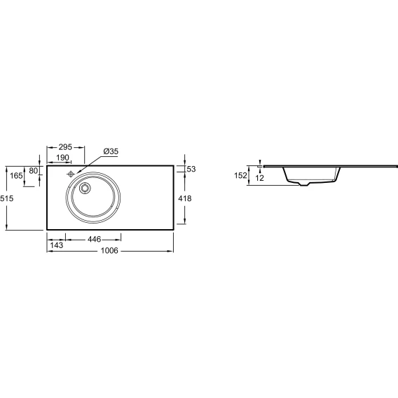 Раковина 100,6x51,5 см Jacob Delafon Odeon Rive Gauche EB2564-DE1