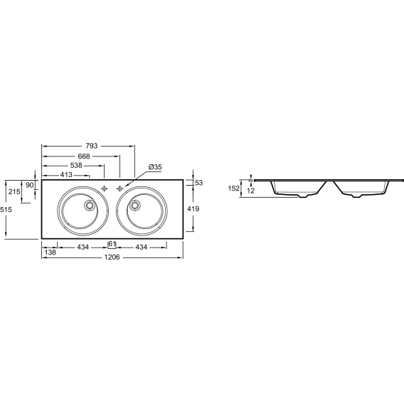 Раковина 120,6x51,5 см Jacob Delafon Odeon Rive Gauche EB2565-DE1