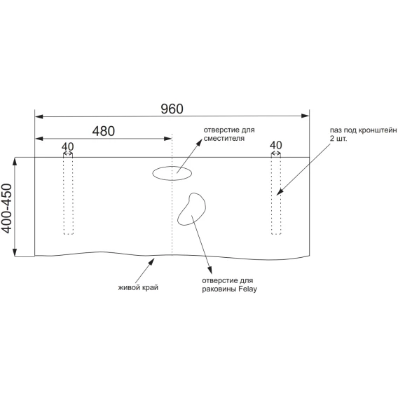Столешница вяз 96 см с отверстиями Velvex Felay stFEL.100.1-71