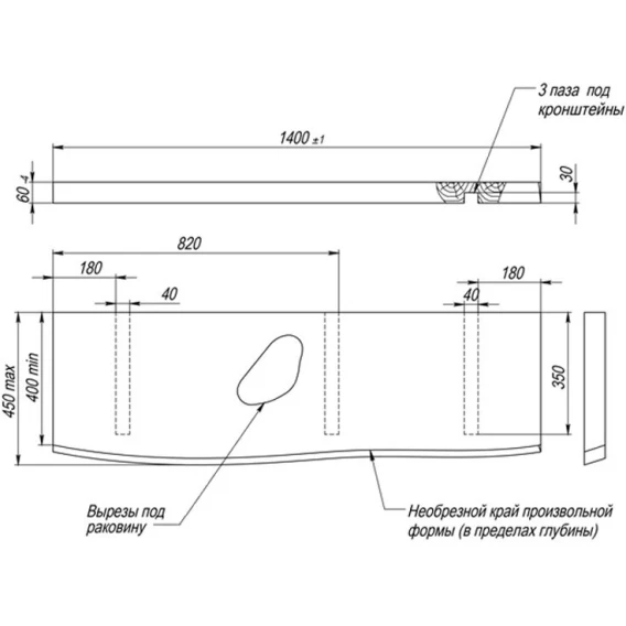 Толщина столешницы из массива вяза может варьироваться от 50 до 60 мм, в зависимости от партии.