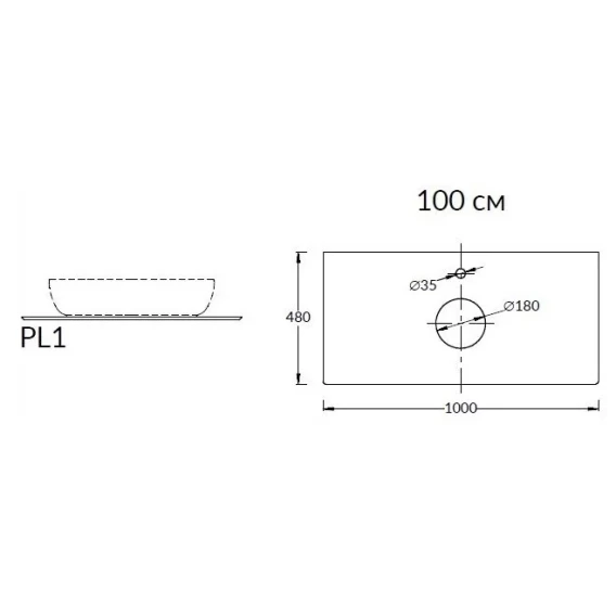 Столешница 100 см бежевый матовый для накладных раковин Kerama Marazzi Plaza Modern Риальто PL1.SG560400R\100