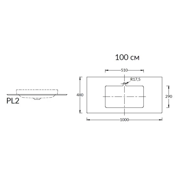 Столешница 100 см бежевый матовый для раковин встраиваемых сверху Kerama Marazzi Plaza Modern Риальто PL2.SG560420R\100