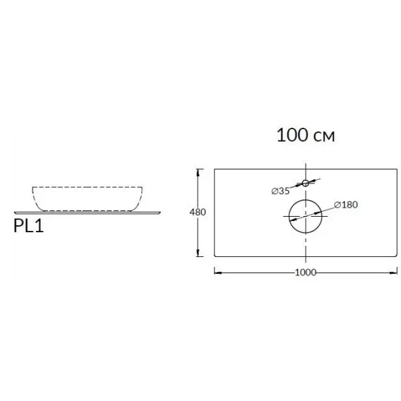 Столешница 100 см серый матовый для накладных раковин Kerama Marazzi Plaza Next Про Дабл PL1.DD500600R\100