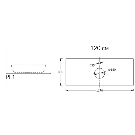 Столешница 117 см бежевый матовый для накладных раковин Kerama Marazzi Plaza Modern Риальто PL1.SG560420R\120