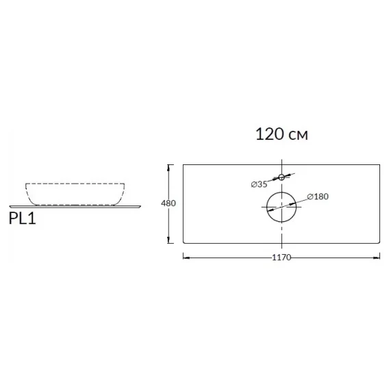 Столешница 117 см серый матовый для накладных раковин Kerama Marazzi Plaza Next Фондамента PL1.DL500920R\120