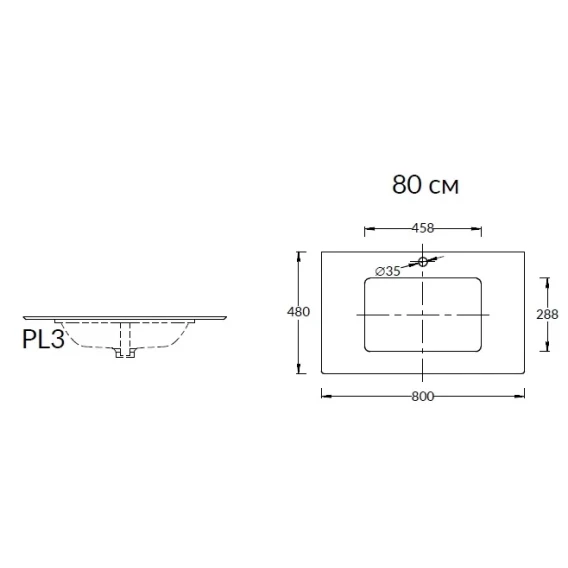 Столешница 80 см белый матовый для раковин встраиваемых снизу Kerama Marazzi Plaza Classic Монте Тиберио PL3.SG507100R\80