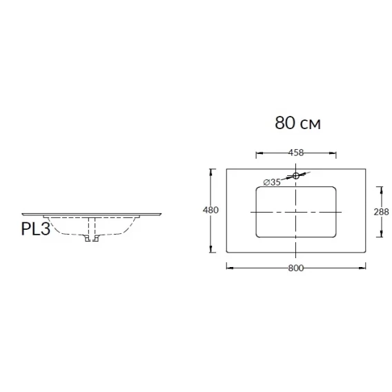 Столешница 80 см коричневый глянец для раковин встраиваемых снизу Kerama Marazzi Plaza Classic Парнас PL3.VT280\80T