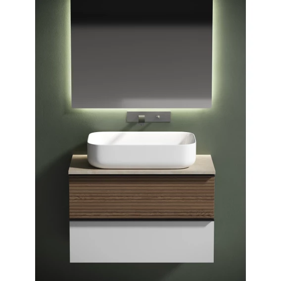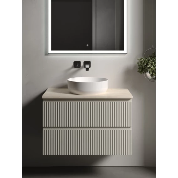 Тумба с раковиной Sancos Delta DL80W + TT80A2 + CN5004 80 см, подвесная, со столешницей, светлый дуб/белый матовый