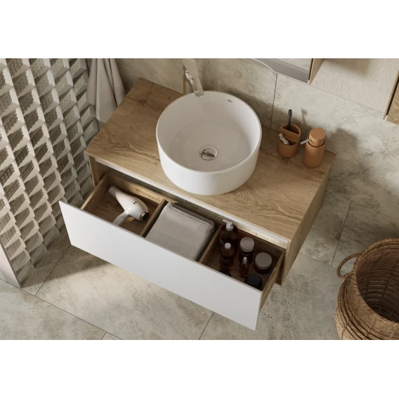 Тумба с раковиной дуб эльвезия/белый глянец 89 см Акватон Либерти 1A2799K5LYC70